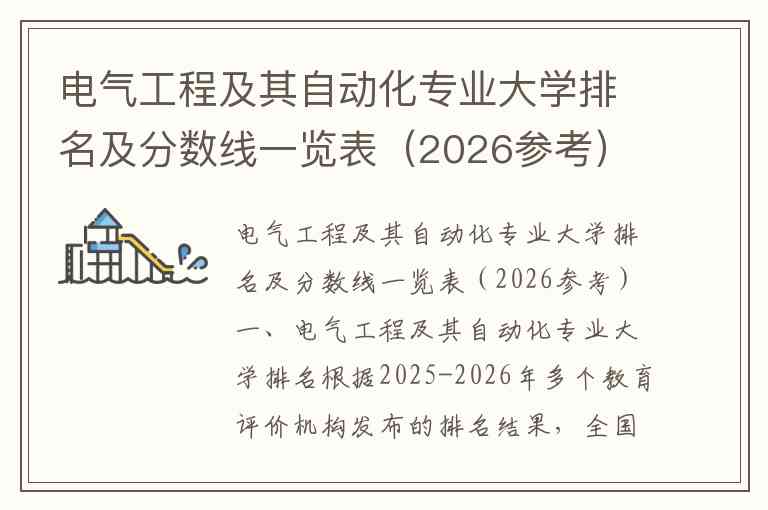 电气工程及其自动化专业大学排名及分数线一览表(2026参考)