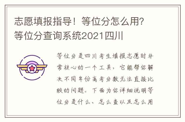 等位分是四川考生填报志愿时非常核心的一个工具,它能帮你解决不同年份高考分数无法直接比较的问题。