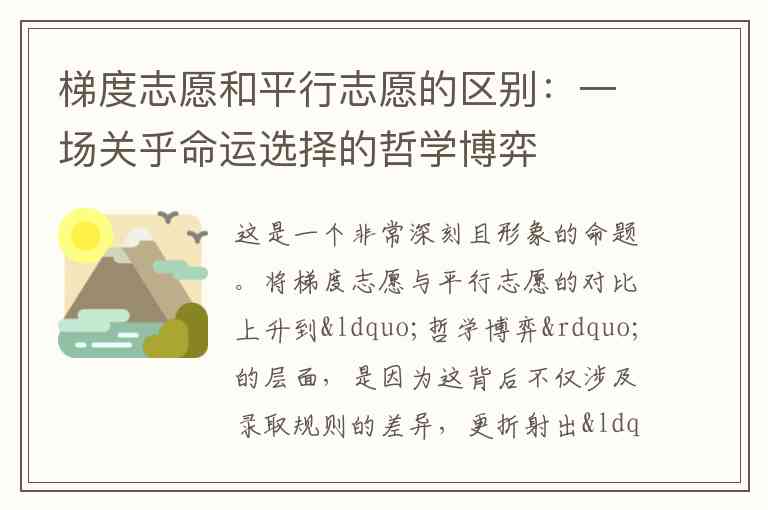这是一个非常深刻且形象的命题。将梯度志愿与平行志愿的对比上升到“哲学博弈”的层面,是因为这背后不仅涉及录取规则的差异,更折射出“风险与确定性”、“先后与优劣”、“命运与选择”之间的根本性矛盾。