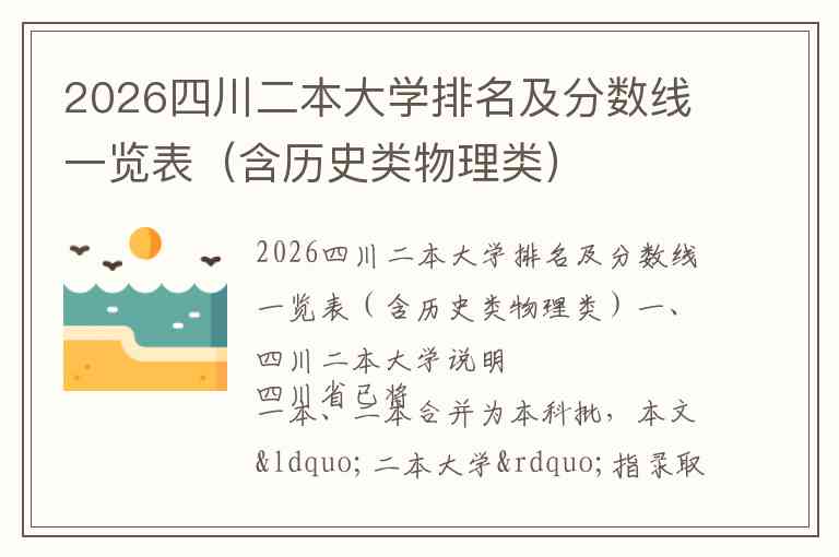 2026四川二本大学排名及分数线一览表(含历史类物理类)