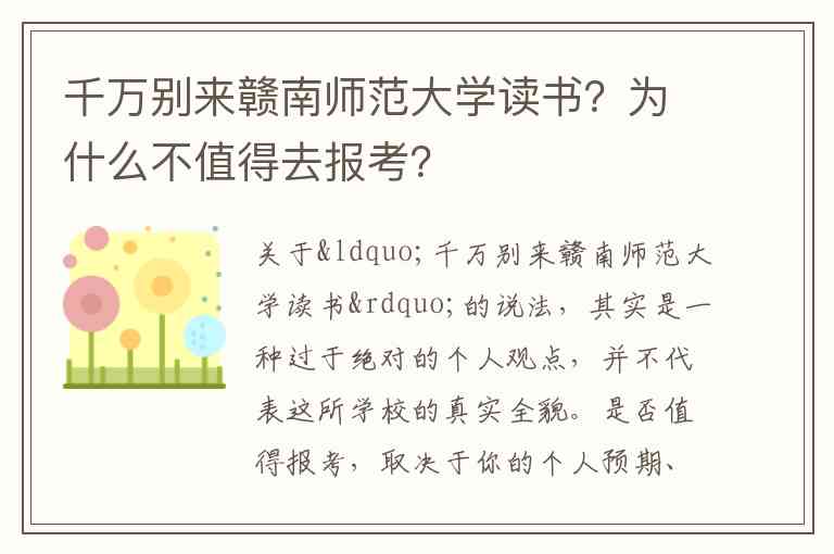 关于“千万别来赣南师范大学读书”的说法,其实是一种过于绝对的个人观点,并不代表这所学校的真实全貌。是否值得报考,取决于你的个人预期、高考分数以及对未来发展的规划。以下从不同角度为你分析,帮助你做出更客观的判断。