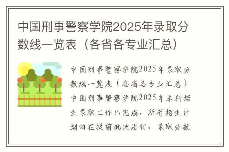 中国刑事警察学院2025年录取分数线一览表(各省各专业汇总)