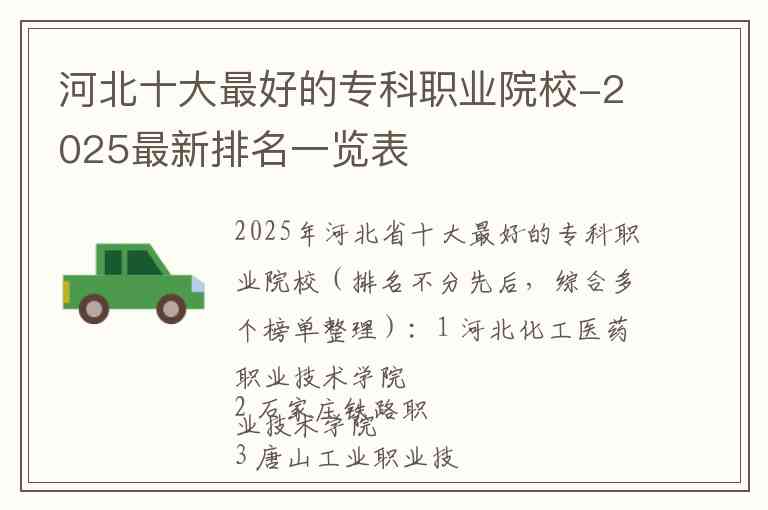 2025年河北省十大最好的专科职业院校(排名不分先后,综合多个榜单整理):