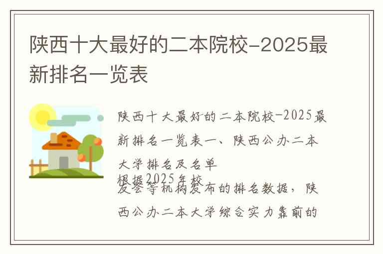 陕西民办二本院校中,以下院校在2025年各类排名中表现突出,办学水平位居前列: