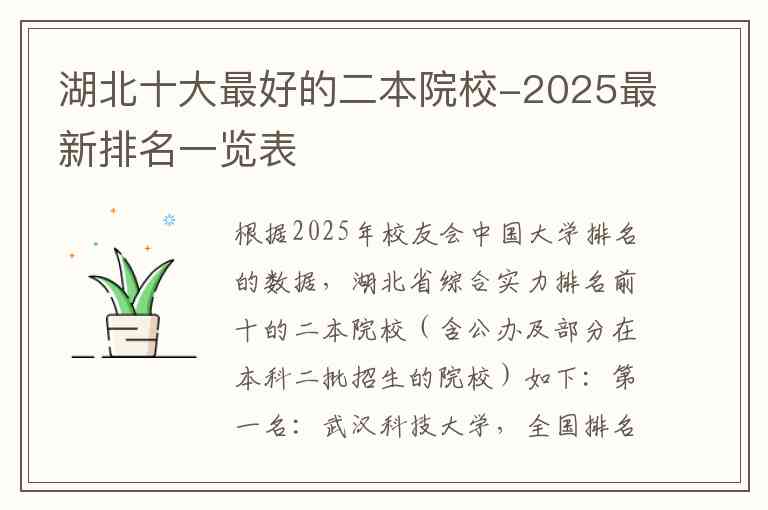 根据2025年校友会中国大学排名的数据,湖北省综合实力排名前十的二本院校(含公办及部分在本科二批招生的院校)如下: