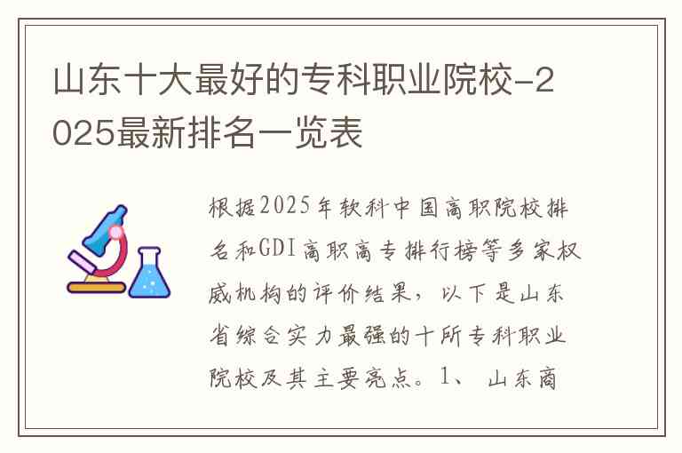 根据2025年软科中国高职院校排名和GDI高职高专排行榜等多家权威机构的评价结果,以下是山东省综合实力最强的十所专科职业院校及其主要亮点。
