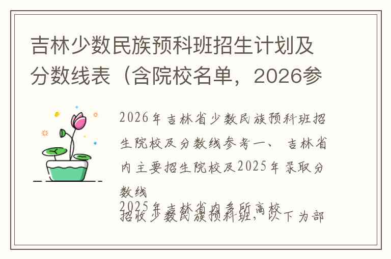2026年吉林省少数民族预科班招生院校及分数线参考