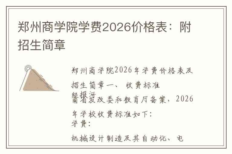 郑州商学院2026年学费价格表及招生简章