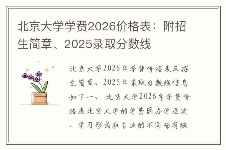 北京大学2026年学费价格表及招生简章、2025年录取分数线信息如下