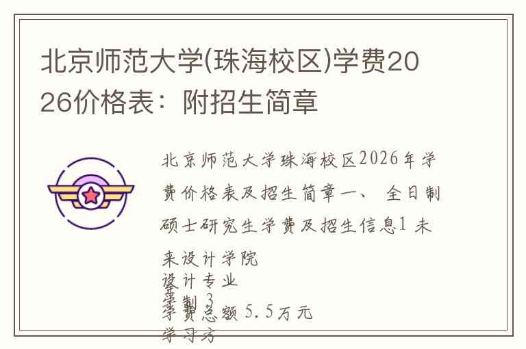 北京师范大学珠海校区2026年学费价格表及招生简章