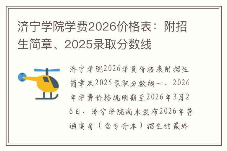 济宁学院2026学费价格表附招生简章及2025录取分数线