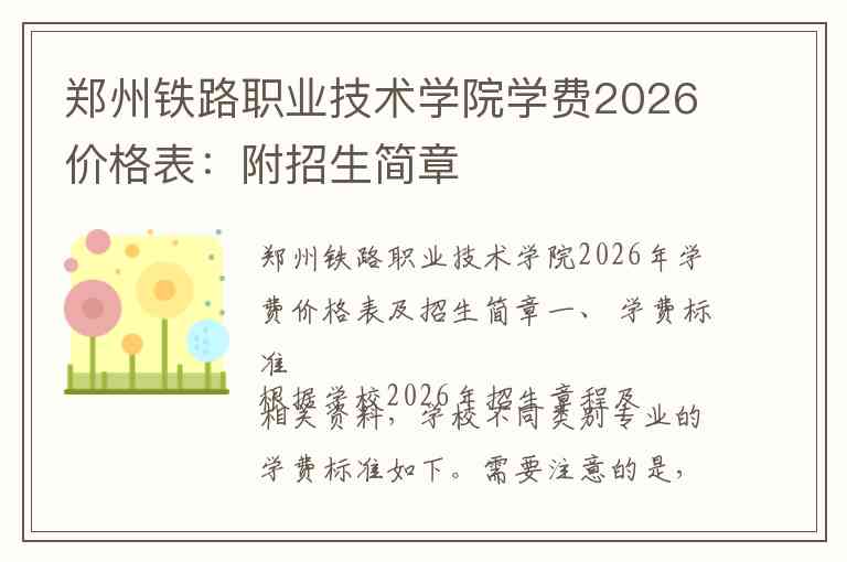 郑州铁路职业技术学院2026年学费价格表及招生简章