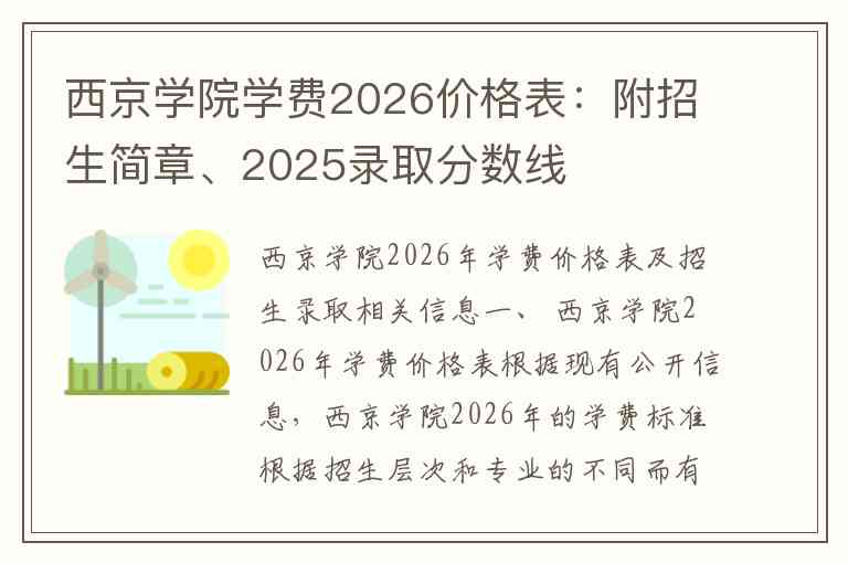 西京学院2026年学费价格表及招生录取相关信息