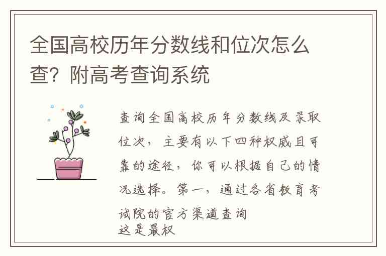 查询全国高校历年分数线及录取位次,主要有以下四种权威且可靠的途径,你可以根据自己的情况选择。