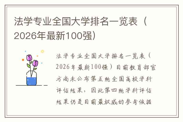 以上排名主要依据教育部第四轮学科评估结果,该评估是目前国内公认的权威标准。在软科2025年中国大学专业排名中,法学专业排名前列的院校与中国政法大学、中国人民大学、武汉大学、北京大学、华东政法大学、西南政法大学等基本一致。校友会2026年中国大学排名的法学类相关榜单中,中国政法大学位列政法类大学榜首。此外,武汉大学在2026年泰晤士高等教育世界学科排名中法学位列全球第49名,表现突出。考生在择校时,建议同时参考院校的综合声誉、地理位置及个人发展规划。