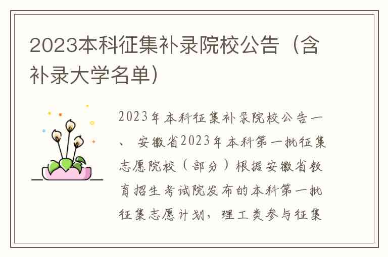 一、 安徽省2023年本科第一批征集志愿院校(部分)