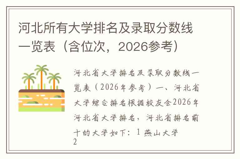 根据校友会2026年河北省大学排名,河北省排名前十的大学如下: