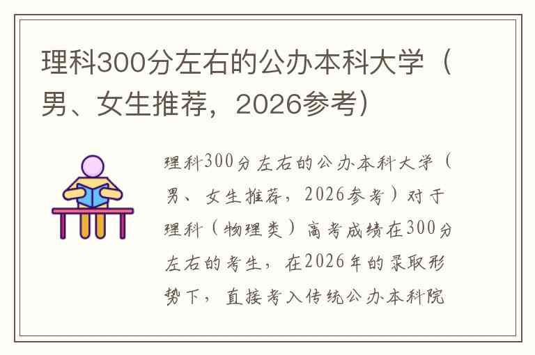 对于理科(物理类)高考成绩在300分左右的考生,在2026年的录取形势下,直接考入传统公办本科院校的难度较大,但通过关注特定地区、特定类型的公办院校(如职业本科、新升格院校及偏远地区院校),仍存在实现“公办本科”目标的机会。