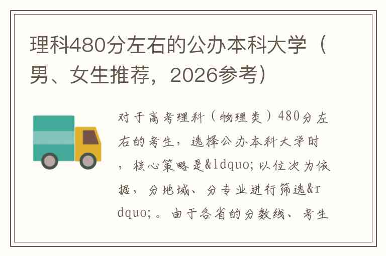 对于高考理科(物理类)480分左右的考生,选择公办本科大学时,核心策略是“以位次为依据,分地域、分专业进行筛选”。由于各省的分数线、考生位次和招生政策差异较大,480分在不同的省份可能意味着“一本线附近”、“优质公办二本”或“公办二本主力”,因此以下推荐需要你结合所在省份的具体情况进行参考。