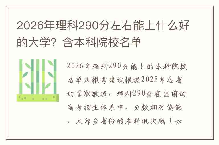 总结:2026年理科290分能否上本科,关键取决于你所在的省份。如果你在新疆等本科线较低的省份,有机会被上述民办或职业本科院校录取。如果你在其他多数省份,建议将重点放在选择一所优质的公办专科院校上,并关注其中的“双高计划”建设院校。