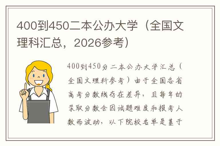 文科在400至450分区间内,不同省份的录取情况差异较大,部分省份该分数段可选择的公办院校相对较少。