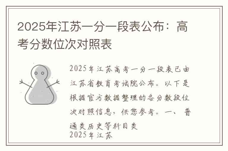 2025年江苏高考一分一段表已由江苏省教育考试院公布。以下是根据官方数据整理的各分数段位次对照信息,供您参考。