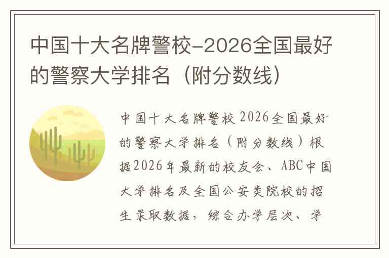 根据2026年最新的校友会、ABC中国大学排名及全国公安类院校的招生录取数据,综合办学层次、学科实力、就业质量等因素,2026年全国综合实力最强、社会认可度最高的十所名牌警察大学如下。