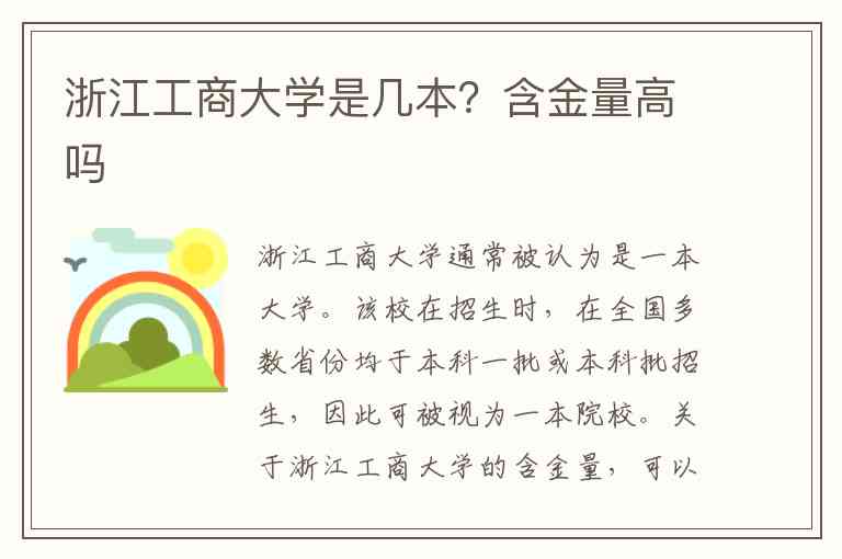 浙江工商大学通常被认为是一本大学。该校在招生时,在全国多数省份均于本科一批或本科批招生,因此可被视为一本院校。