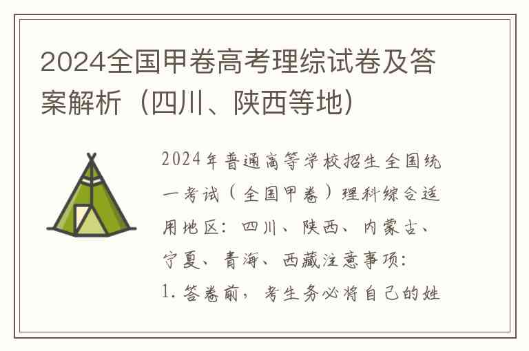 2024年普通高等学校招生全国统一考试(全国甲卷)理科综合