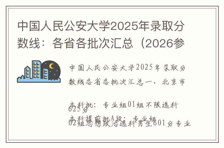 中国人民公安大学2025年录取分数线各省各批次汇总