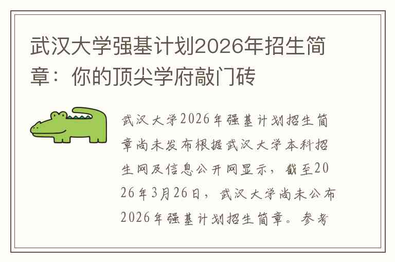 根据武汉大学本科招生网及信息公开网显示,截至2026年3月26日,武汉大学尚未公布2026年强基计划招生简章。