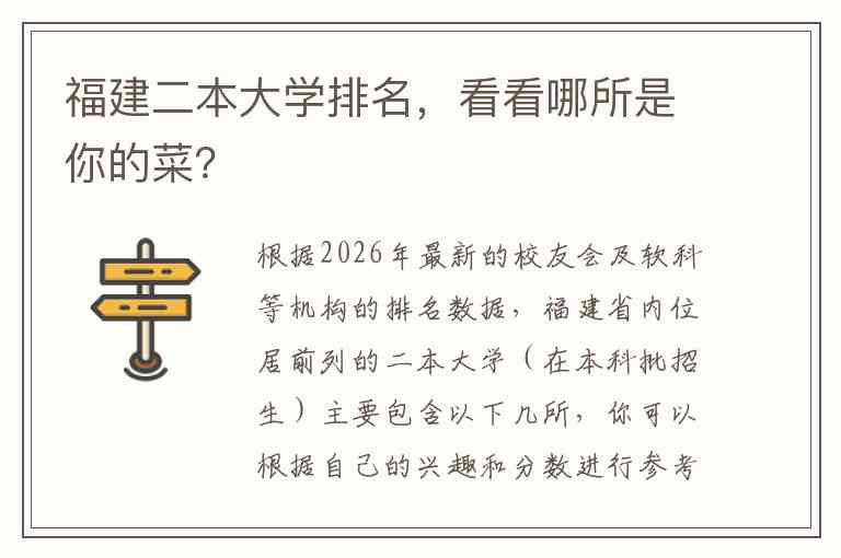 根据2026年最新的校友会及软科等机构的排名数据,福建省内位居前列的二本大学(在本科批招生)主要包含以下几所,你可以根据自己的兴趣和分数进行参考。