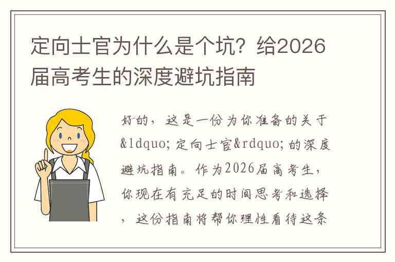 好的,这是一份为你准备的关于“定向士官”的深度避坑指南。作为2026届高考生,你现在有充足的时间思考和选择,这份指南将帮你理性看待这条路径。