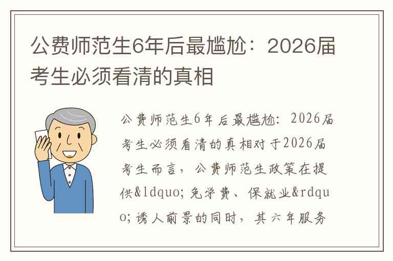 公费师范生6年后最尴尬:2026届考生必须看清的真相