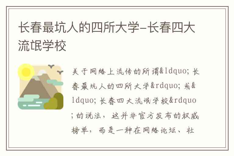 关于网络上流传的所谓“长春最坑人的四所大学”或“长春四大流氓学校”的说法,这并非官方发布的权威榜单,而是一种在网络论坛、社交媒体上流传的民间说法或负面口碑汇总。这些说法通常指向学校在某些方面存在管理不规范、收费争议或后勤服务差等问题。