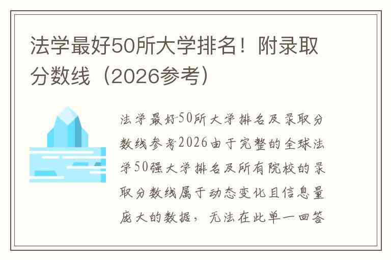 由于完整的全球法学50强大学排名及所有院校的录取分数线属于动态变化且信息量庞大的数据,无法在此单一回答中全部列出。以下基于2026年最新的权威排名数据,为您提供全球及中国内地顶尖法学院的排名情况,并整理部分重点高校2026年法学硕士研究生的复试分数线作为参考。