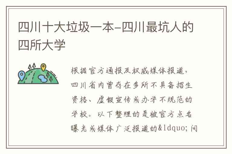 根据官方通报及权威媒体报道,四川省内曾存在多所不具备招生资格、虚假宣传或办学不规范的学校。以下整理的是被官方点名曝光或媒体广泛报道的“问题院校”,供参考: