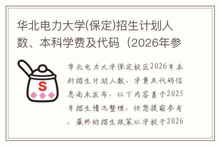 华北电力大学保定校区2026年本科招生计划人数、学费及代码信息尚未发布,以下内容基于2025年招生情况整理,供您提前参考。最终的招生政策以学校于2026年发布的官方信息为准。