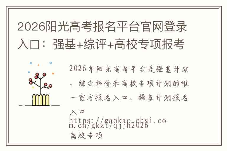 2026年阳光高考平台是强基计划、综合评价和高校专项计划的唯一官方报名入口。