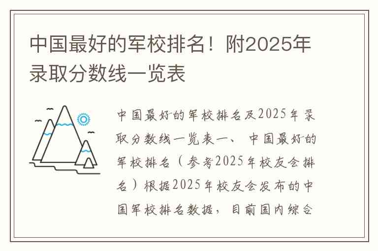 中国最好的军校排名及2025年录取分数线一览表