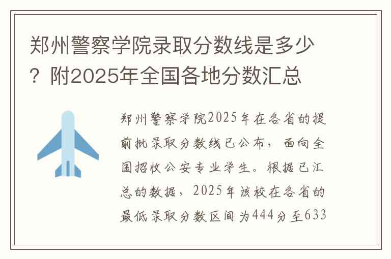以下是2025年郑州警察学院在全国部分省市的最低录取分数线汇总,供您参考: