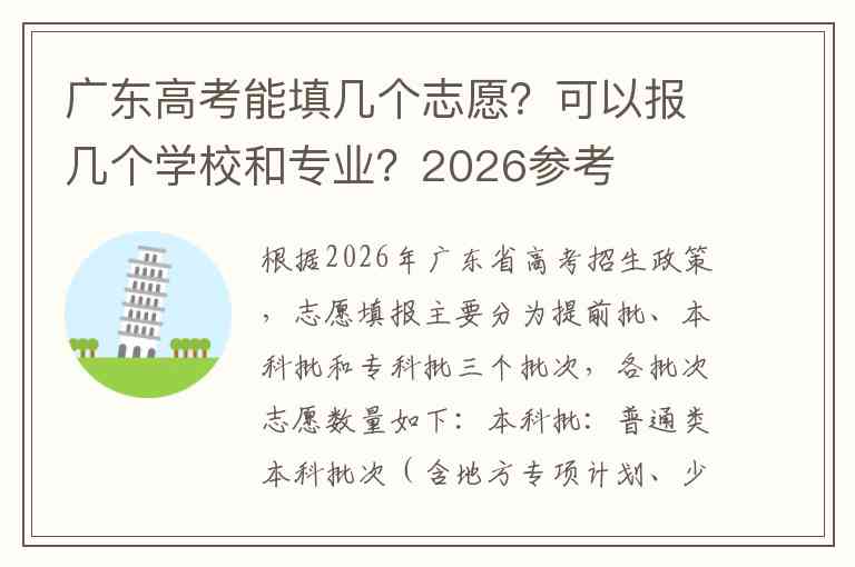 根据2026年广东省高考招生政策,志愿填报主要分为提前批、本科批和专科批三个批次,各批次志愿数量如下: