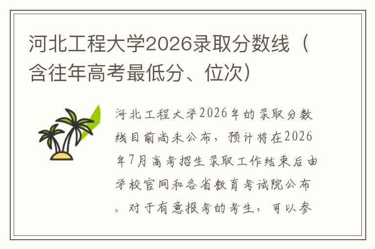 河北工程大学2026年的录取分数线目前尚未公布,预计将在2026年7月高考招生录取工作结束后由学校官网和各省教育考试院公布。