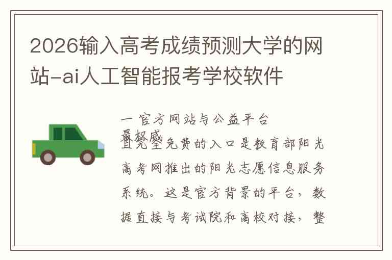 最权威且完全免费的入口是教育部阳光高考网推出的阳光志愿信息服务系统。这是官方背景的平台,数据直接与考试院和高校对接,整合了院校库、专业库以及毕业生就业去向等权威信息,能够根据你的成绩智能筛选不同录取难度的院校,完全免费使用,是所有考生首先应该利用的资源。