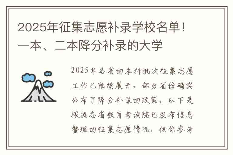 2025年各省的本科批次征集志愿工作已陆续展开,部分省份确实公布了降分补录的政策。以下是根据各省教育考试院已发布信息整理的征集志愿情况,供你参考。