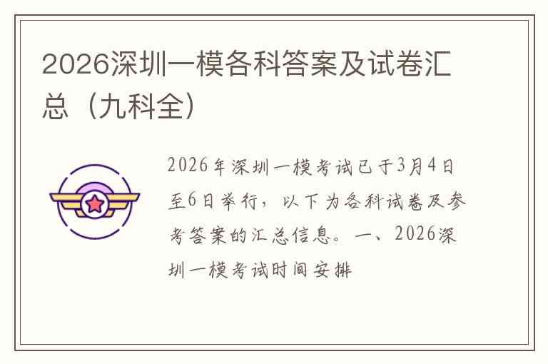 2026年深圳一模考试已于3月4日至6日举行,以下为各科试卷及参考答案的汇总信息。