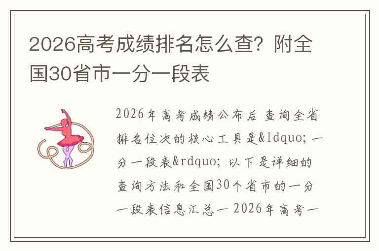 2026年高考成绩公布后 查询全省排名位次的核心工具是“一分一段表” 以下是详细的查询方法和全国30个省市的一分一段表信息汇总