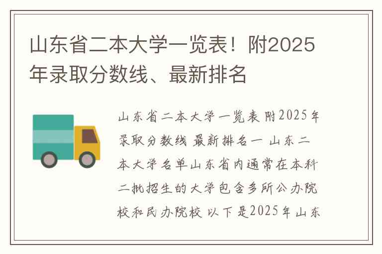 山东省内通常在本科二批招生的大学包含多所公办院校和民办院校 以下是2025年山东省二本大学名单一览表 供您参考