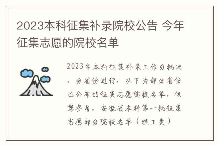 2023年本科征集补录工作分批次、分省份进行,以下为部分省份已公布的征集志愿院校名单,供您参考。