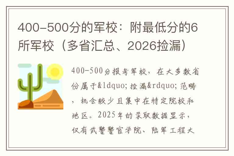 400-500分报考军校,在大多数省份属于“捡漏”范畴,机会较少且集中在特定院校和地区。2025年的录取数据显示,仅有武警警官学院、陆军工程大学、空军航空大学在个别省份出现此分数段。